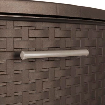 Attractive household storage container furniture around your home shouldn’t have to cost a lot. The Sterilite 3 Drawer Weave Tower is both an efficient storage solution and easy on the eyes. This package includes 4 towers.The attractive wicker design and neutral espresso brown finish complement any home and naturally blends in with your other decor. The driftwood handles make it easy to open and shut the opaque drawers, which keep contents hidden discretely. They go great with any decor style and work well in living rooms, bedrooms, bathrooms, offices, or closets. At 15 inches wide by 24 inches tall, it’s large enough to store books, DVDs, or random household items and doubles as a coffee table or bedside table. If you need more storage room in your space and don’t want to lose your interior style, you’ll love to have the Pack of 4 3 Drawer Weave Towers from Sterilite.