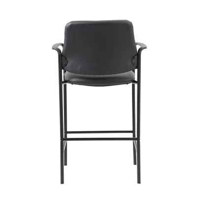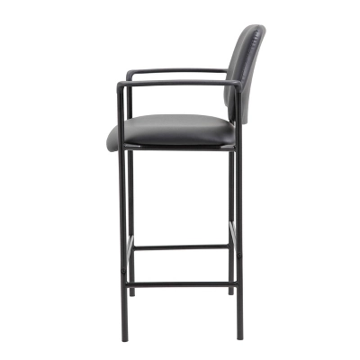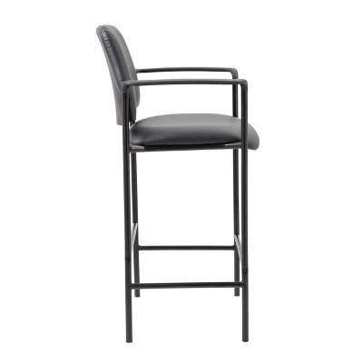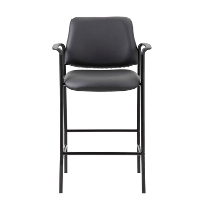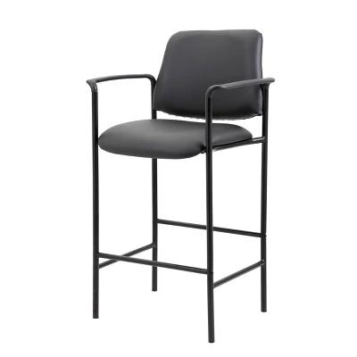 The slender and sleek Boss Square Back Stool in black is a versatile seat that can be utilized from a drafting stool to guest seating. It is made from Caressoft material, an upholstery that looks & feels a lot like leather, but is far more durable and can be easily cleaned with a damp cloth. The stool has fixed arms and a 4 leg tubular base made from sturdy black steel which offers a 275lbs. capacity.