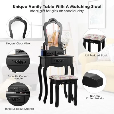 - 【With Mirror, Stool And 3 Storage Drawers】This vanity table set comes with mirror, stool and 3 storage drawers. Powerful storage capacity is great for storing all your jewelry.