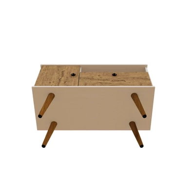 - Includes 2 Concealed Cubby Spaces and 1 Open Shelf