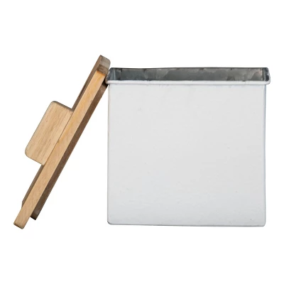 From Foreside Home & Garden, this traditional canister is the perfect storage option for dainty jewelry or small trinkets and change. The textural white finish paired with the warm tone of the wood lid offer a timeless. Although simple and neutral, the sandy-like finish of the metal creates a unique element to enhance the space it’s in. Easily transition this look throughout areas of your home as a simple decorative accent or for functional organization.