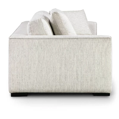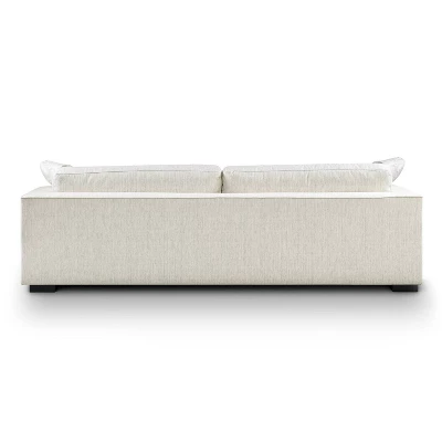 - Loose back cushions are fiber-filled with removable covers